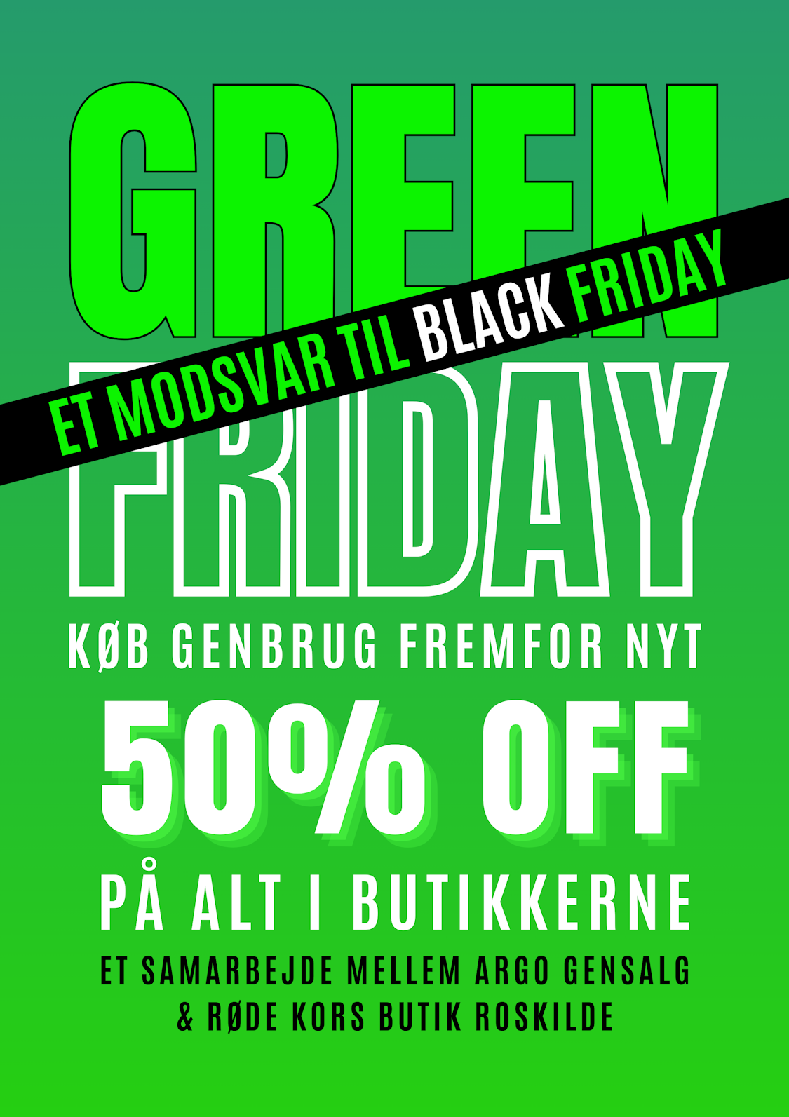 Røde kors butikkerne i Roskilde holder GreenFriday, hvor man kan få op til 50% rabat. Hvorfor købe nyt når man kan få det til en billig pris. Røde kors butikken har mange gode tilbud til den bevidste forbruger som vil passe på miljøet.